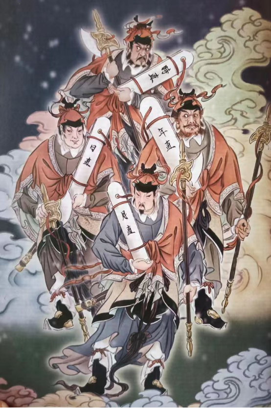 The Four Duty Magistrates are four “on-duty celestial deities” in the Taoist pantheon who are responsible for recording, presenting, and supervising all the affairs and documents within the three realms. They are equivalent to the “timekeeping secretaries” and “delivery supervisors” of the Heavenly Court. They are the core grassroots deities that maintain the smooth flow of information and administrative operations in the Heavenly Realm, the Underworld, and the Human Realm. The “Four Duties” refer to the four deities who take turns being in charge of the years, months, days, and hours; “Duty Magistrates” originally referred to the officials in ancient Chinese counties who were in charge of documents and recording virtues and vices, and were borrowed as a religious title.
