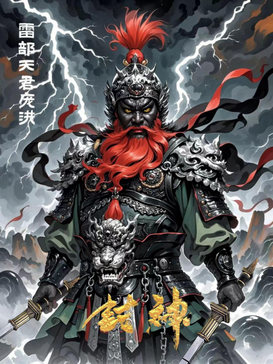 Responsibility: Thunder and Lightning Correct Order Great God, responsible for executing the orders of the Thunder Sect, and in charge of distributing thunder and rain. Image: Face like red dates, wearing a tiger head crown, having wings that can fly in battle, holding a thunder god chisel. Title: Bu Feng Mengli Yin Yaguai Xin Tianjun, Thunder and Lightning Thirty-third Heaven Grand Commander Qing Di Tianzun.